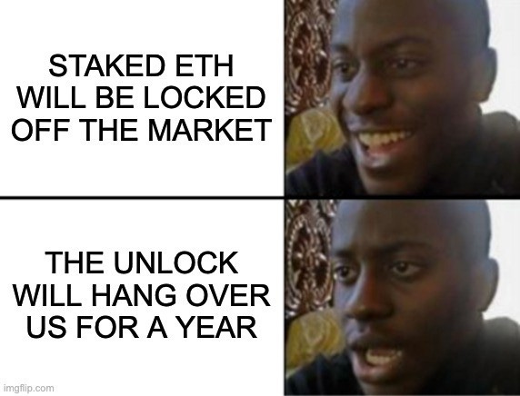 After all the opportunistic participants have farmed their PoW forks and rushed to the exits, staked participants won’t be able to withdraw their tokens until the Shanghai fork in 2023.