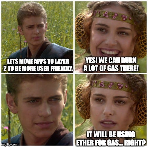 This remains to be seen — incentives are destiny, and once a Layer-2 chain achieves a large and sticky user base, game theory suggests the Layer-2’s local population will start demanding value accrual be localized instead of being paid as tribute to the empire.